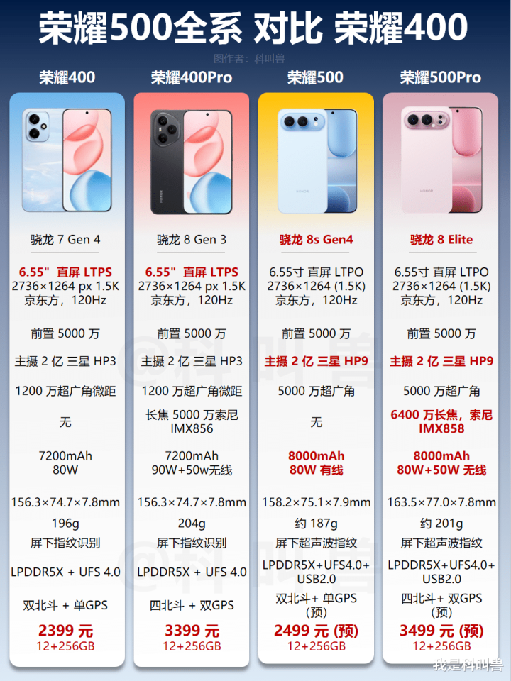 荣耀400系列是2025年荣耀卖的最好的中端机,发布于2025年5月,如今半年未满,500又赶鸭子上架,升级点有哪些呢?